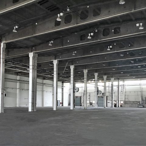 Hohe Decken und Bodenbelastbarkeit erlauben die Installation effizienter Hochregalsysteme, die Nutzung von Gabelstaplern und die Lagerung sperriger Industrie-Werkstücke.