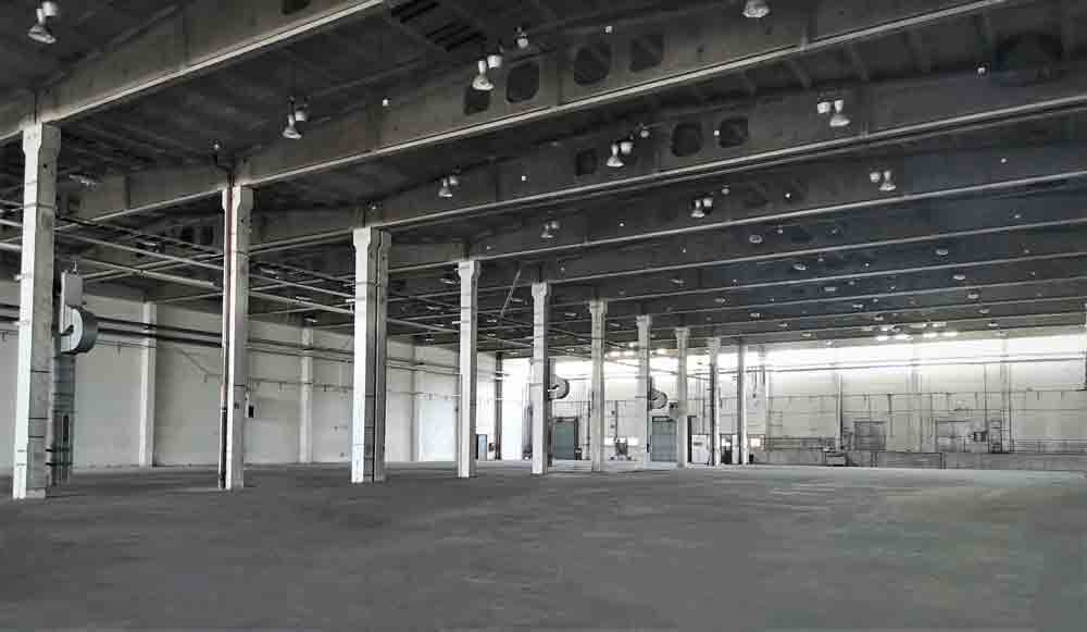 Hohe Decken und Bodenbelastbarkeit erlauben die Installation effizienter Hochregalsysteme, die Nutzung von Gabelstaplern und die Lagerung sperriger Industrie-Werkstücke.